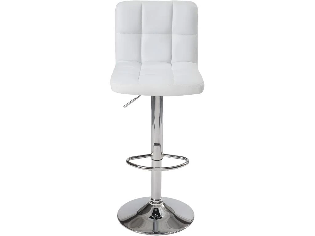 Cette chaise de Bar aux finitions soignées, piètement et repose pied chromés, réglable en hauteur grâce à un vérin de gaz. Il repose sur une base Diamètre 38.5 cm. Pour une stabilité optimale