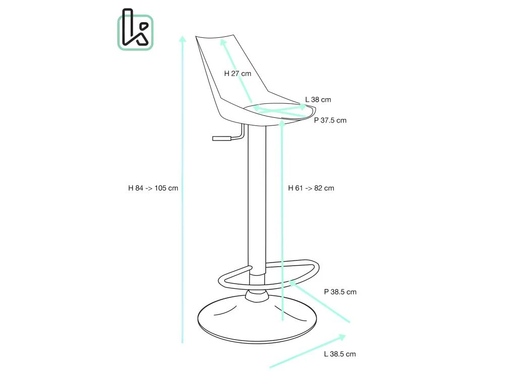 - Hauteur d’assise : 82 cm