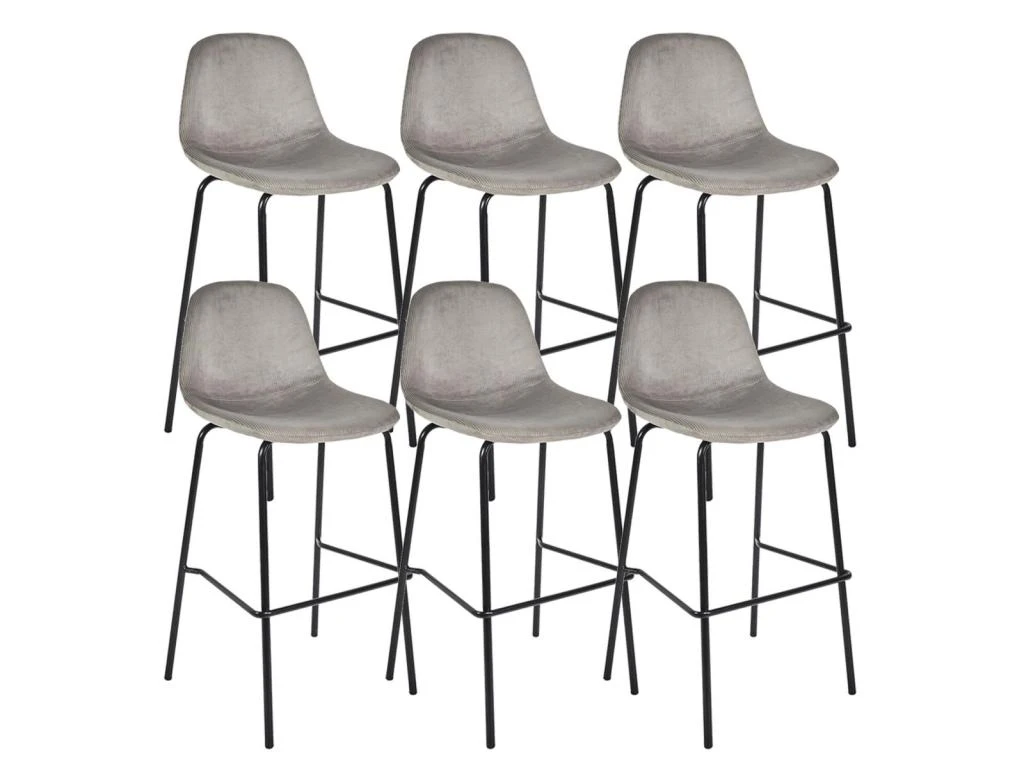 Lot de 6 Tabourets de Bar en Velours Côtelé Gris de la gamme Konae.