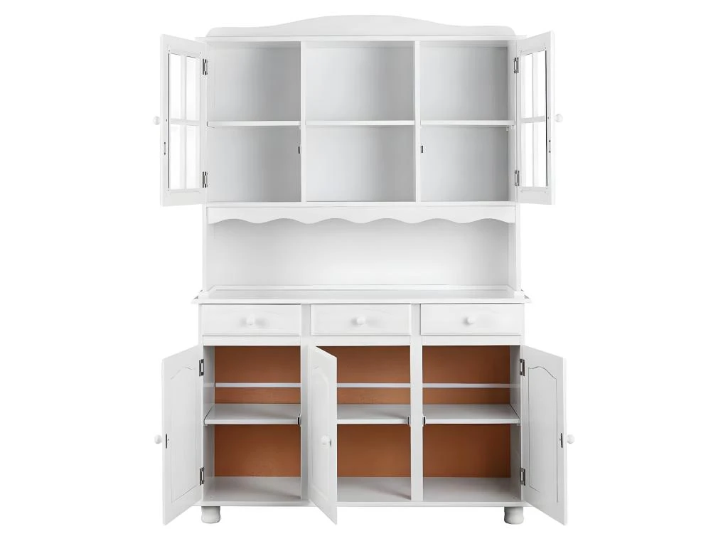 Buffet Vaisselier 5 Portes 3 Tiroirs Bois Massif Vernis Blanc Laurie.