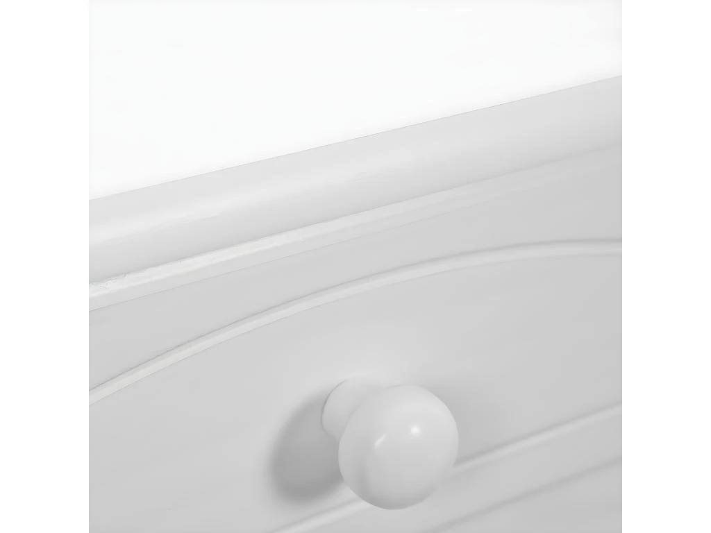 La finition vernis blanc laisse apparaître le veinage du bois. Il s’agit d’une finition transparente.