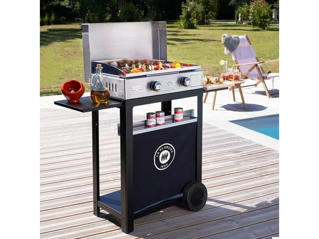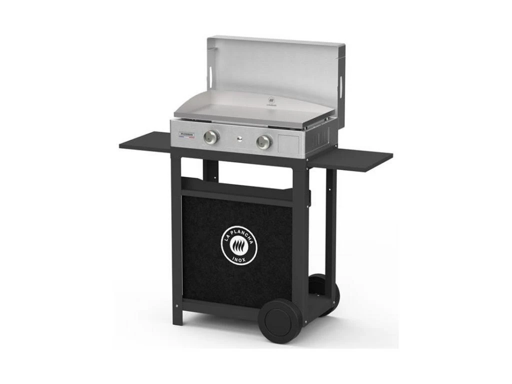 Le Marquier Plancha gaz 4000w plaque inox 68x34cm avec chariot et couvercle – pcti260ic Le PCTI260IC de la marque Le Marquier est un ensemble plancha gaz 2 feux + chariot noir + couvercle inox.