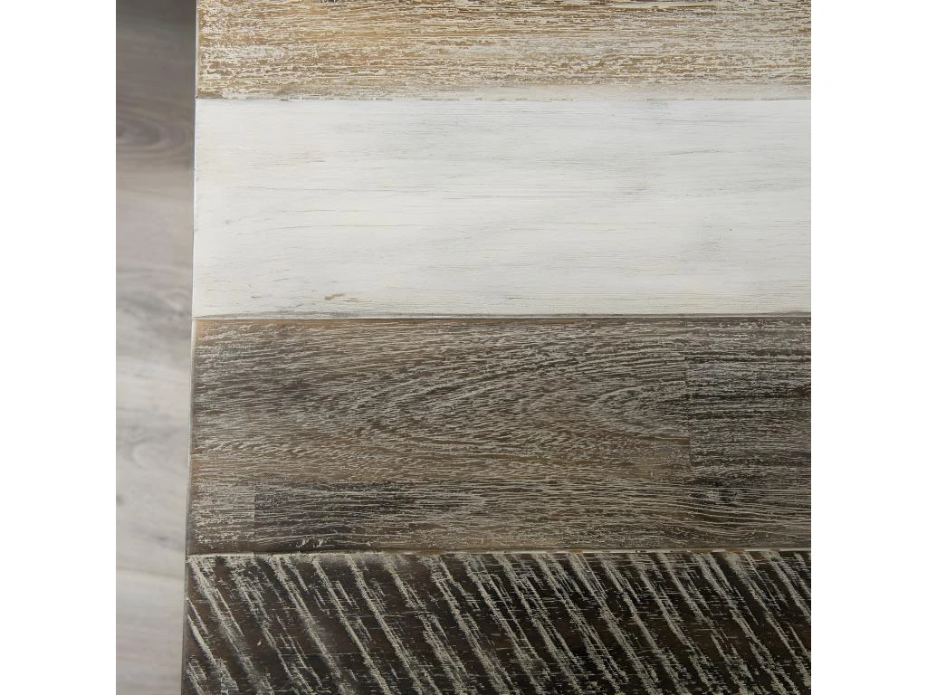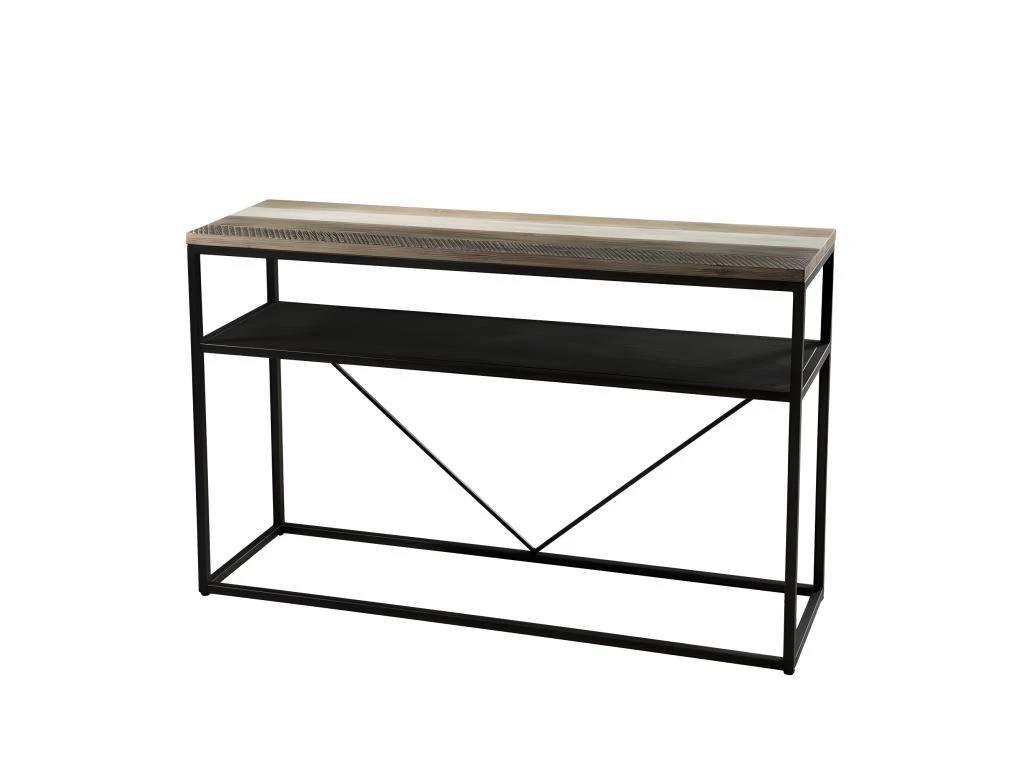 Console noire rectangulaire avec tablette bois acacia et acier noir. Dimensions : 120 x 35 x 80 cm. Article en Acacia et Acier. Cet article est composé de bois d’acacia de plusieurs coloris ! Cette collection présente donc diverses teintes plus ou moins claires. Il est possible de trouver des petites imperfections ou des irrégularités puisqu’il s’agit de pièces uniques assemblées pour ne créer qu’un seul produit. Acquérir du bois recyclé est une initiative écoresponsable qui permet de lutter contre la déforestation.