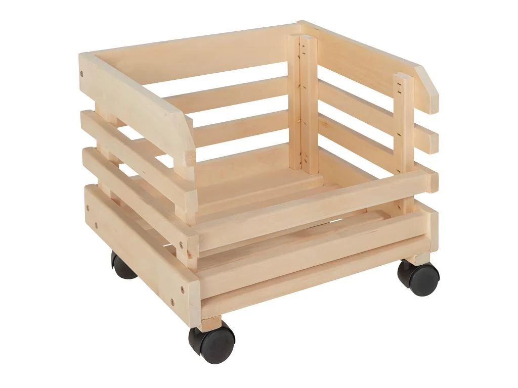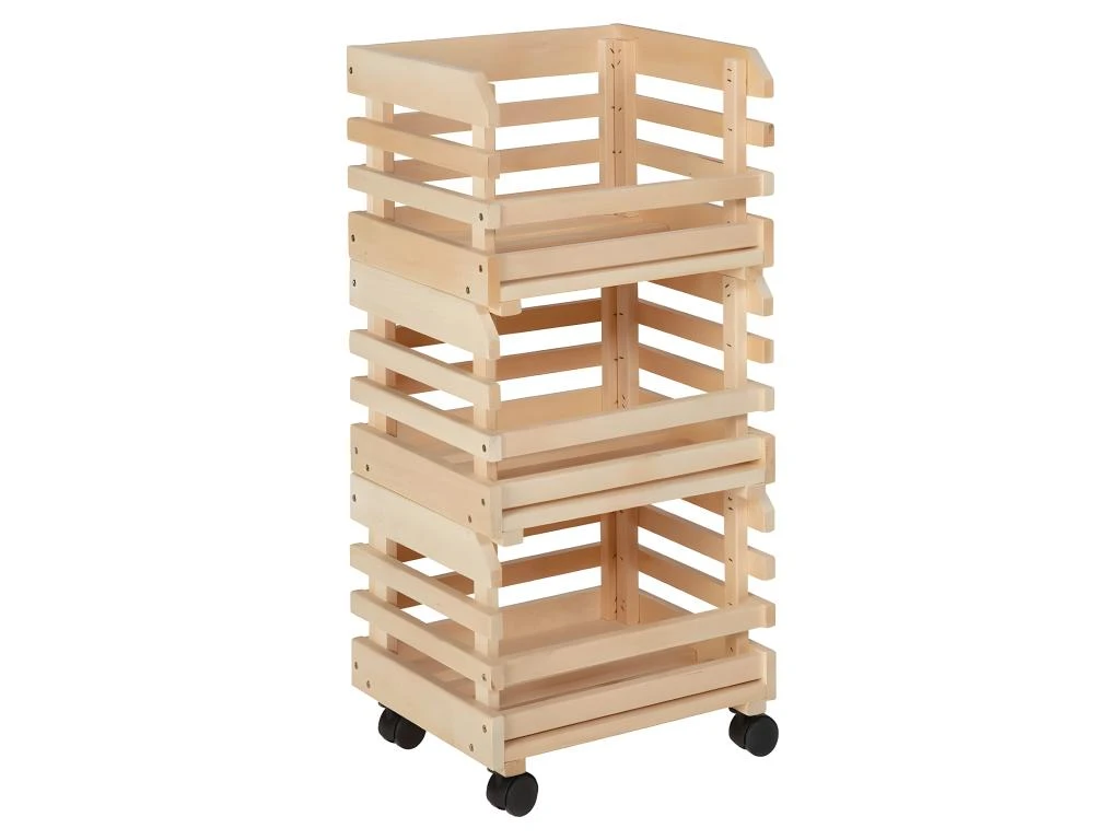 Lot 3 Cageots Empilables Pin Massif sur Roulettes de la gamme Légumes.