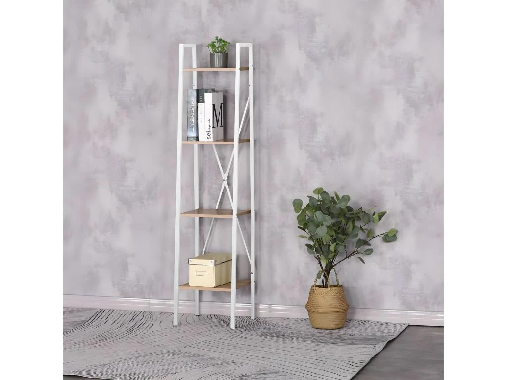Etagère Colonne à 4 Niveaux Bois et Métal Blanc Lieta.