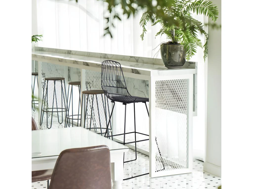 Apportez une touche contemporaine à votre intérieur avec le tabouret de bar KIRK. Sa structure filaire en métal noir toute en finesse apportera de la légèreté, l’originalité et du minimalisme à votre cuisine ou salle à manger. On aime les motifs géométriques de son dossier qui s’apparentent au style scandinave, toujours tendance ! Son petit coussin en simili noir ajoute un peu de confort à l’ensemble. Dans un intérieur contemporain ou industriel, le tabouret de bar KIRK ne laissera pas indifférent. Pour une décoration accordée, n’hésitez pas à associer le tabouret de bar KIRK à la chaise KIRK !