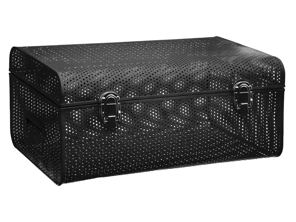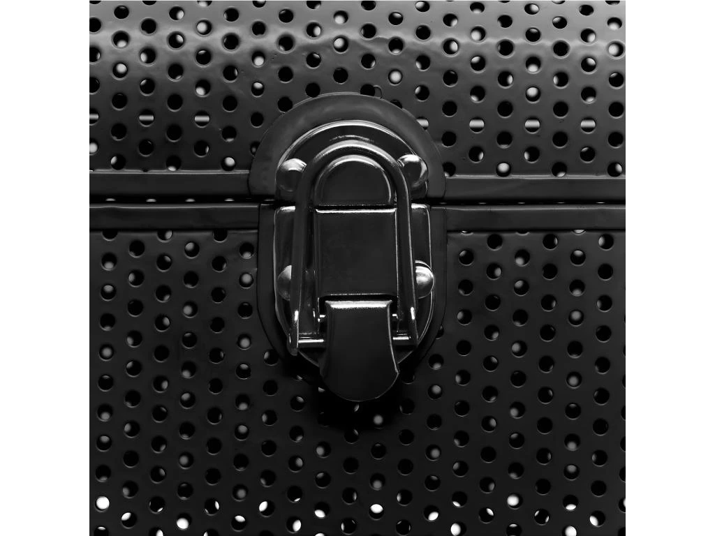 Lot de 2 Coffres de rangement Cantines en métal Noir perforé – Dimensions : S: L. 38,5 x l. 22 x H. 17,5 cm – M: L. 45 x l. 27 x H. 20 cm – Matière : Fer – Poids : 4,05 kg.