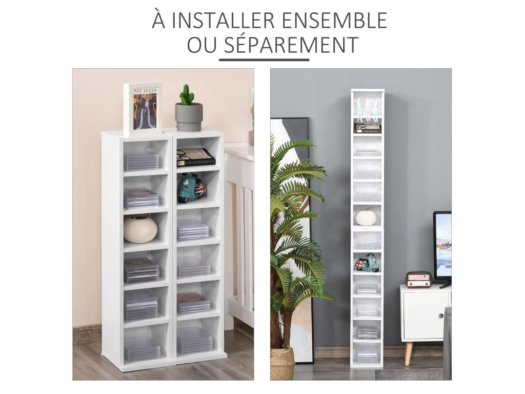 – Lot de 2 étagères colonnes doté d’une grande capacité de rangement pouvant accueillir un maximum de 204 CD
