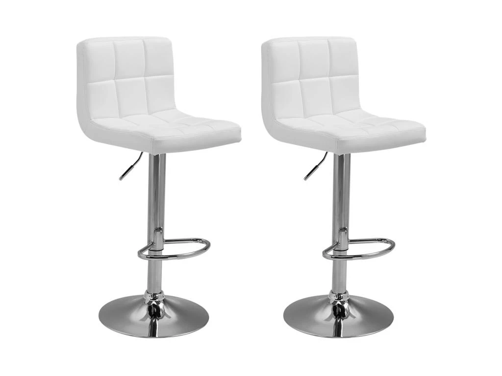 Les tabourets de bar MIKE sont conçus avec des matériaux modernes de qualité : l’association de l’acier chromé et du polyuréthane blanc donneront à votre pièce un look contemporain sans lésiner sur la robustesse. Votre confort sera assuré par des assises mœlleuses et rembourrées, vous serez également parfaitement installé grâce aux repose-pieds. Pratique, ces tabourets hauts sont réglables en hauteur et pivotent à 360°.