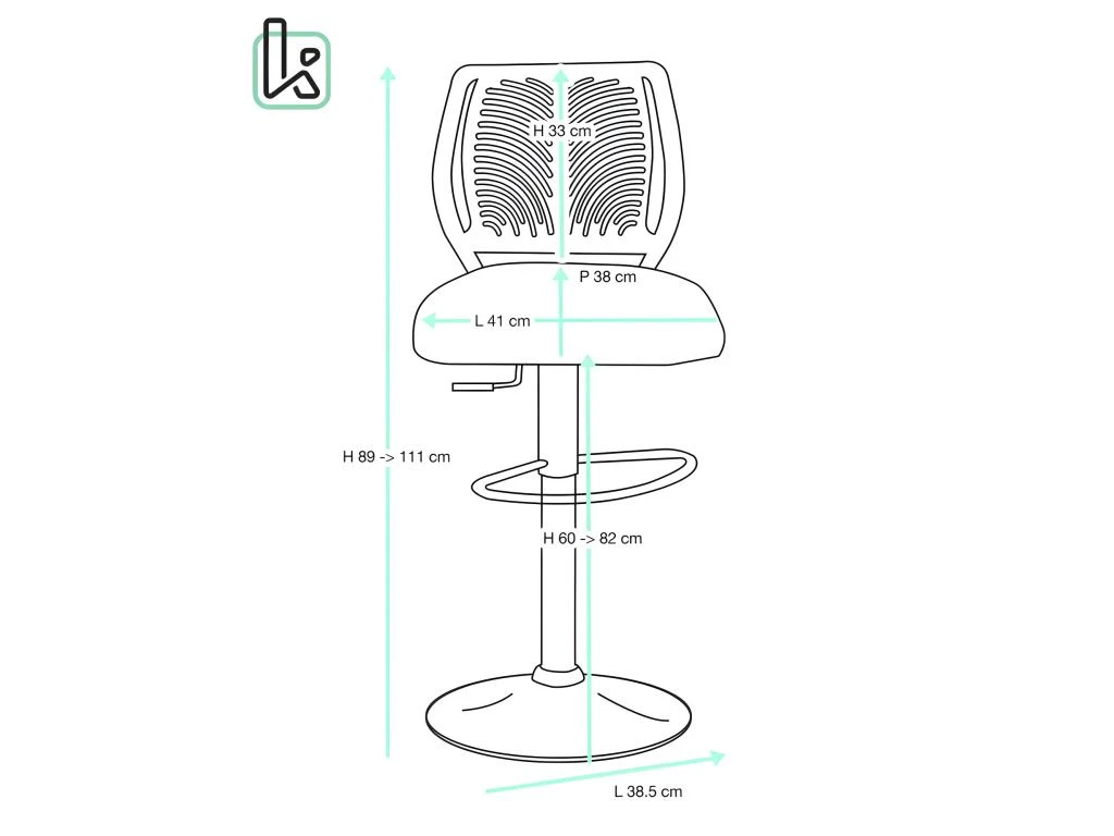 - Hauteur d’assise : 82 cm