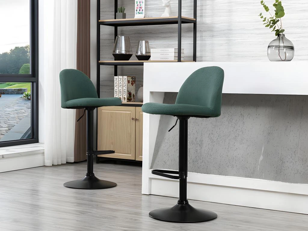 Les tabourets de bar CAYETANA seront idéaux pour des moments de partage autour d’un meuble de bar, d’une table haute ou encore d’un îlot de cuisine. Ils disposent d’un revêtement en tissu bien rembourré et de pieds en métal noir réglables en hauteur.