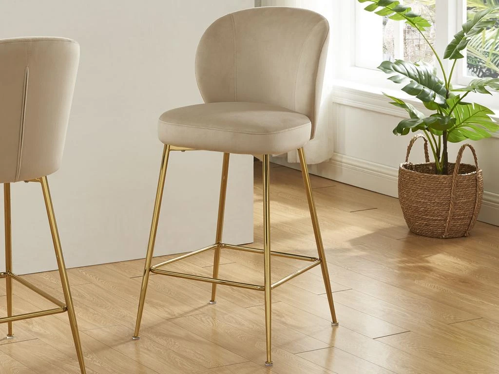 Les tabourets POLPONA offrent une silhouette formée par un dossier englobant, une assise bien rembourrée reposant sur un piètement en métal doré. Cette assise revêt des matières nobles et robustes notamment grâce à son velours très doux et confortable. Son style néo-rétro tend à concilier traditionalisme et modernité grâce à ses lignées épurées et ses formes arrondies.