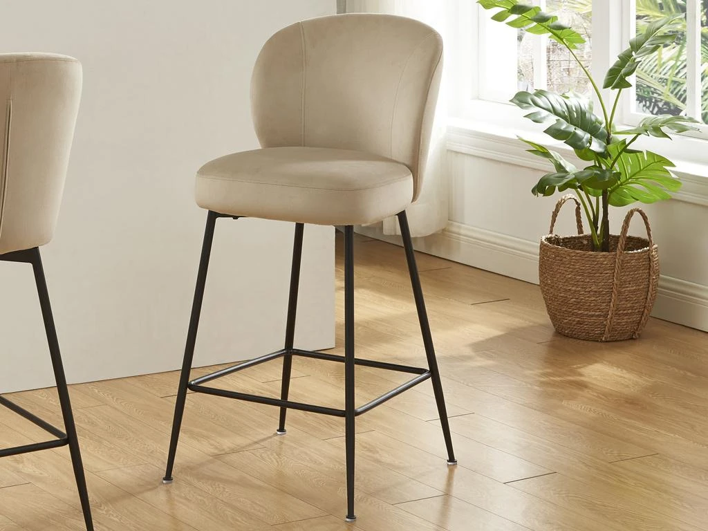Les tabourets POLPONA offrent une silhouette formée par un dossier englobant, une assise bien rembourrée reposant sur un piètement en métal noir. Cette assise revêt des matières nobles et robustes notamment grâce à son velours très doux et confortable. Son style néo-rétro tend à concilier traditionalisme et modernité grâce à ses lignées épurées et ses formes arrondies.