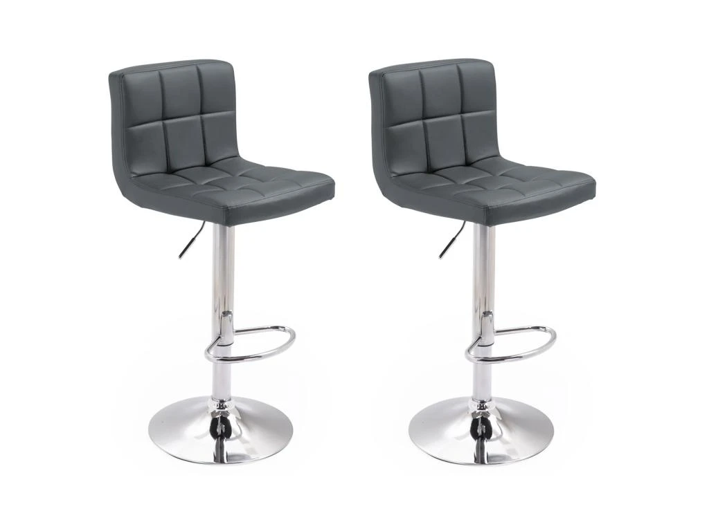 Les tabourets de bar MIKE sont conçus avec des matériaux modernes de qualité : l’association de l’acier chromé et du polyuréthane gris donneront à votre pièce un look contemporain sans lésiner sur la robustesse. Votre confort sera assuré par des assises mœlleuses et rembourrées, vous serez également parfaitement installé grâce aux repose-pieds. Pratique, ces tabourets hauts sont réglables en hauteur et pivotent à 360°.