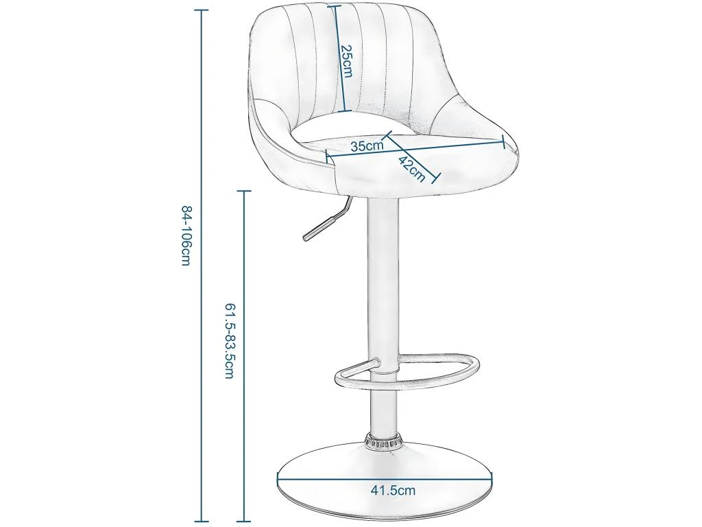 Hauteur d’assise : env. 61,5 – 83,5 cm