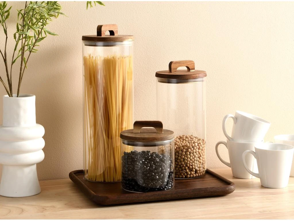 Vous aimez l’organisation ? Optez pour nos bocaux FELIANI ! Leur design intemporel saura se fondre dans toutes les cuisines. Ces bocaux sont faits de verre soufflé à la bouche et d’un couvercle en bois, ils deviendront des éléments de rangement indispensables à votre quotidien!