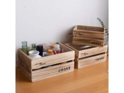 • Cet lot de 3 caisses de rangement en bois apporte une note originale et rustique à votre intérieur. Il est parfait pour votre garage, jardin, chambre , cuisine, .. • Dimensions (grand) : Hauteur 17 cm x Longueur 36 cm x Profondeur 25 cm • Dimensions (moyenne) : Hauteur 17 cm x Longueur 31 cm x Profondeur 21 cm • Dimensions (petit) : Hauteur 17 cm x Longueur 26 cm x Profondeur 17 cm • L’article sera expédié assemblée. • Couleur: Bois natural • Cod. RE4593