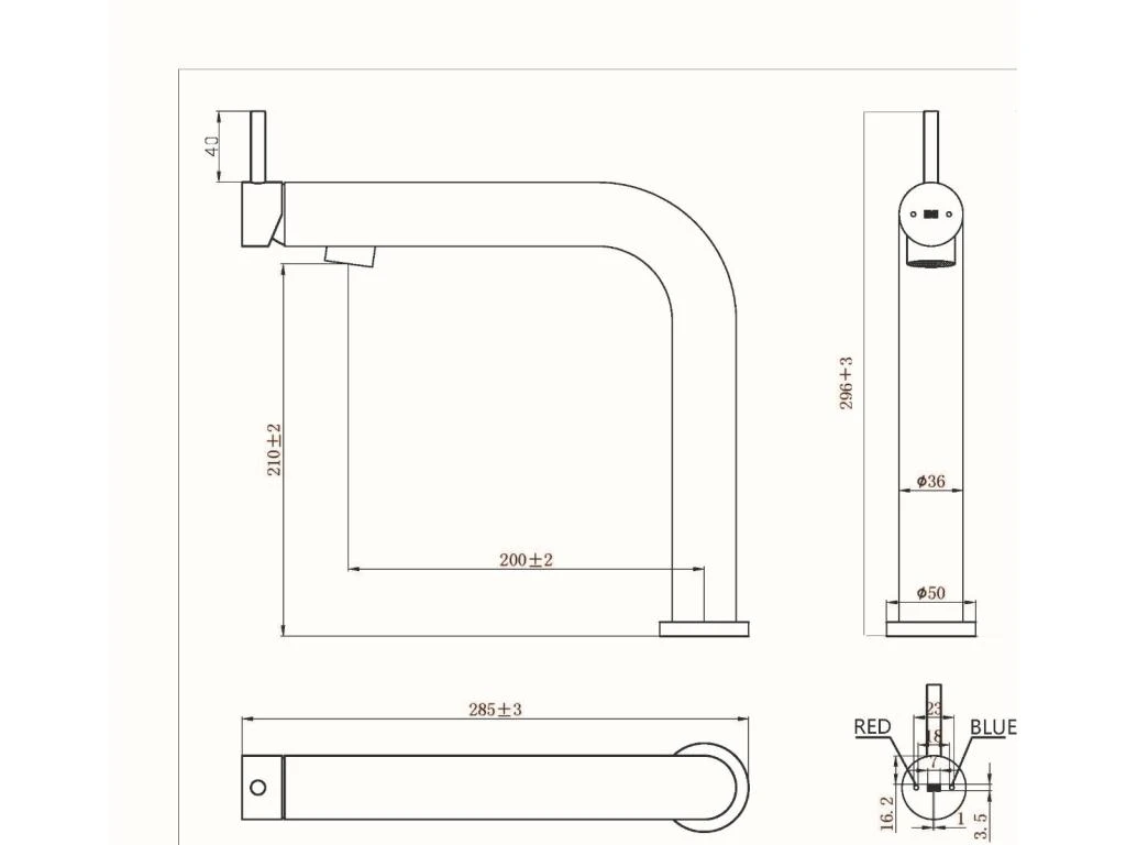 Vérifiez que la longueur du bec est compatible avec votre évier (voir dessin technique)