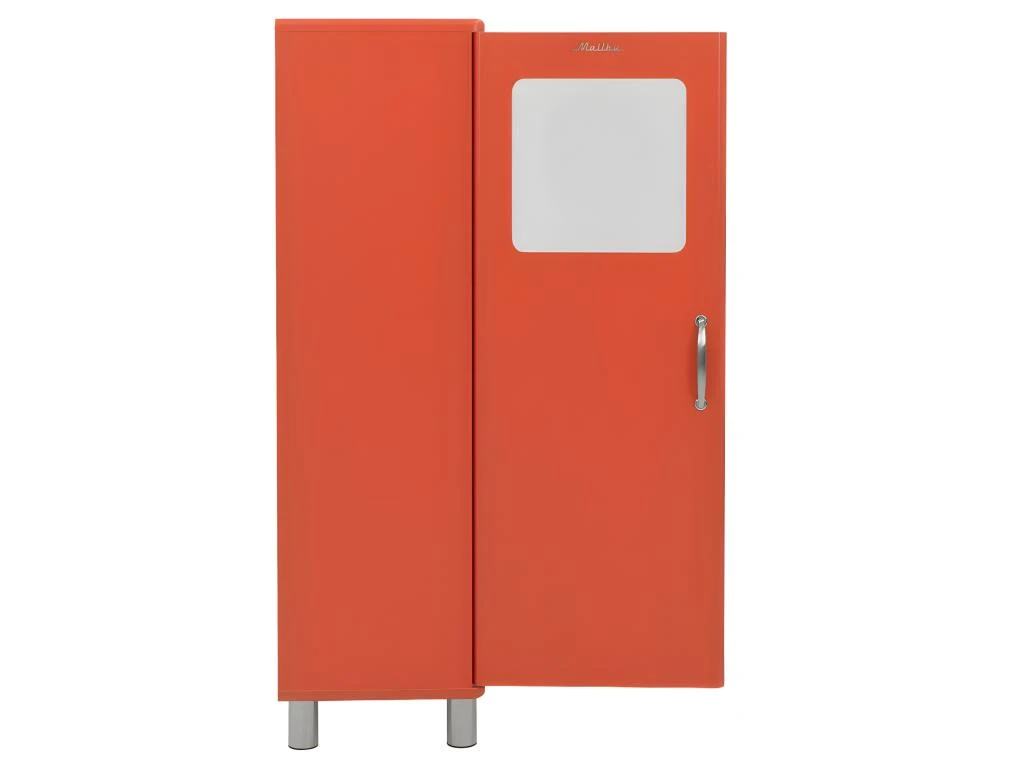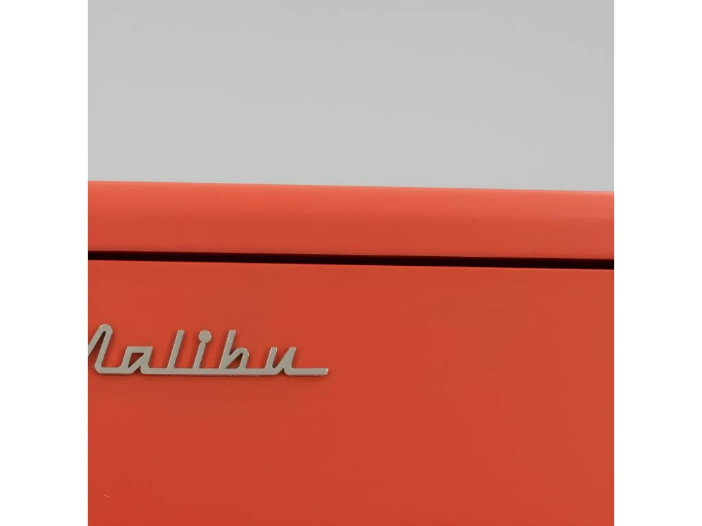 Cette allure rétro est renforcée par une touche métallisée présente sur le piétement, les poignées, mais aussi sur le haut du meuble grâce aux lettres Malibu.