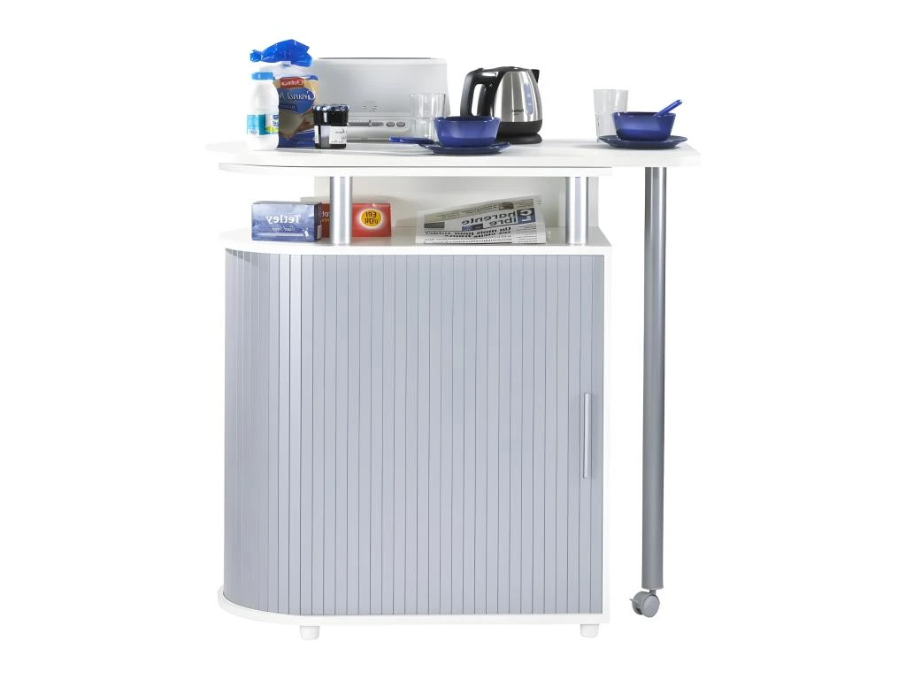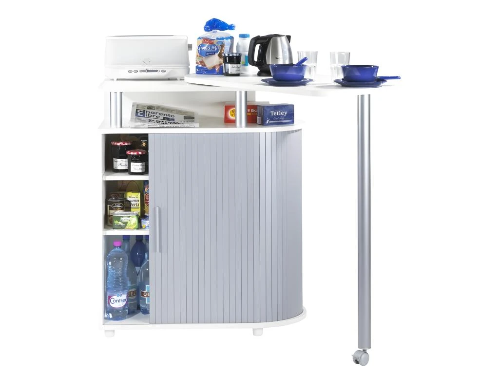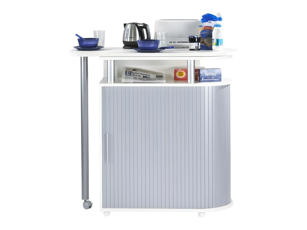 Desserte de Cuisine et Table Pivotante Coloris Alu + Blanc