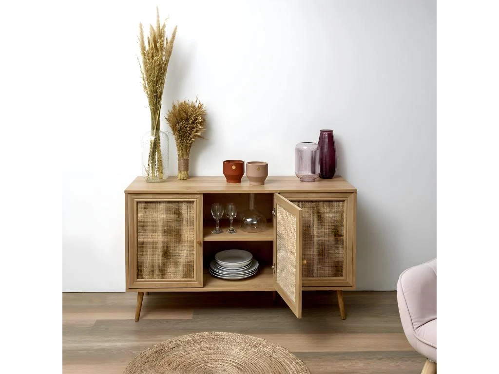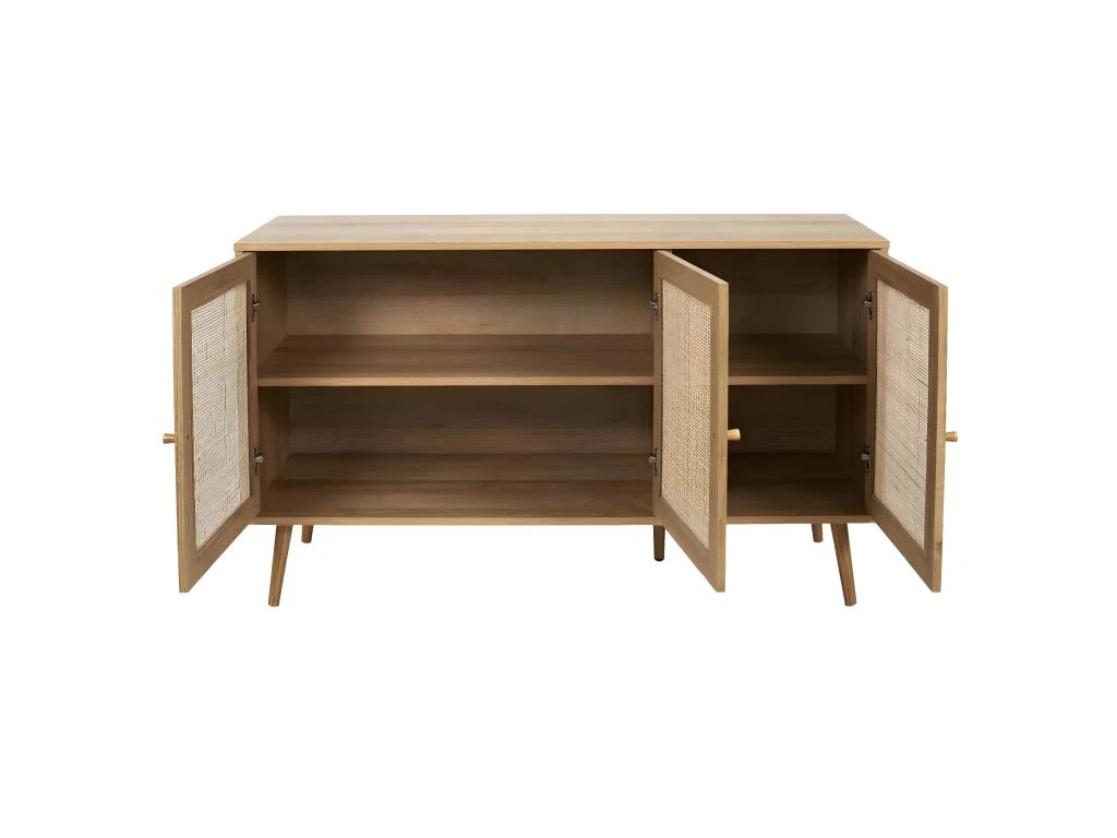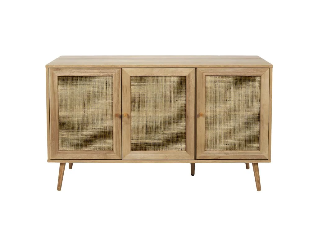 Buffet 3 Portes Effet Bois et Façades Rotin de la gamme Maya.