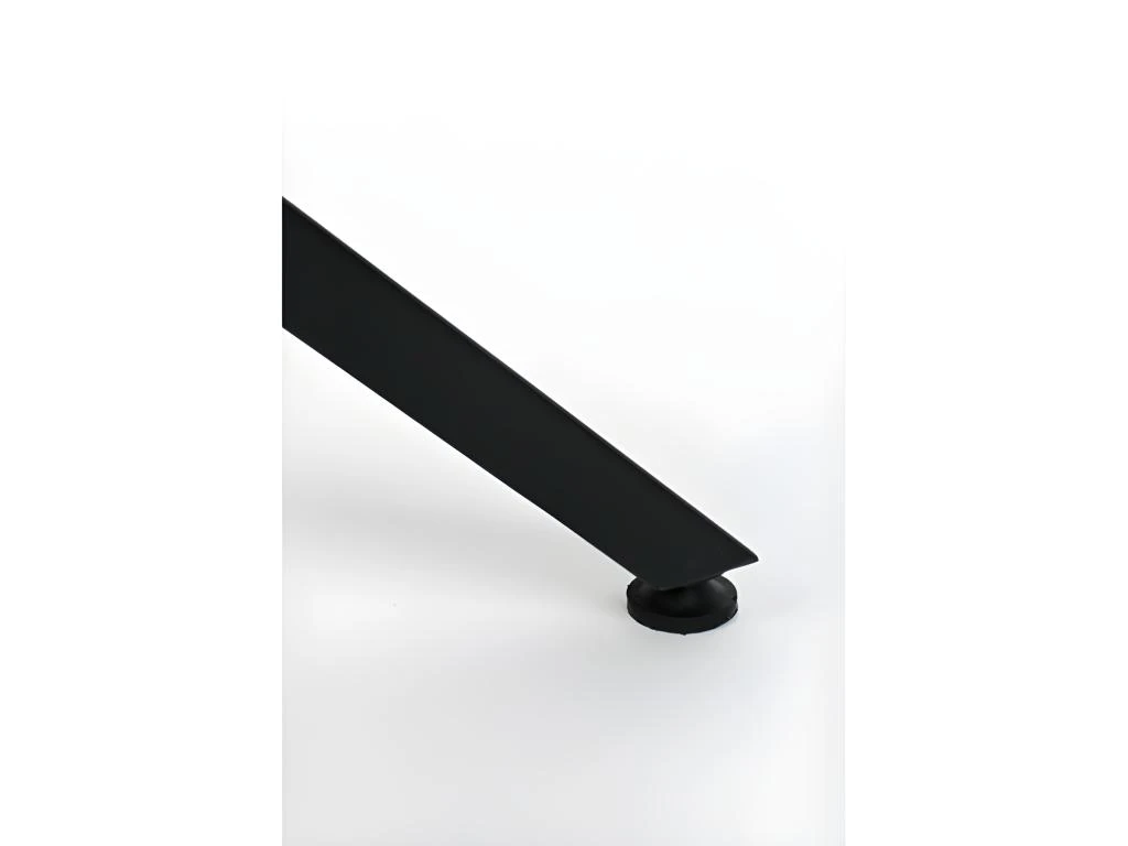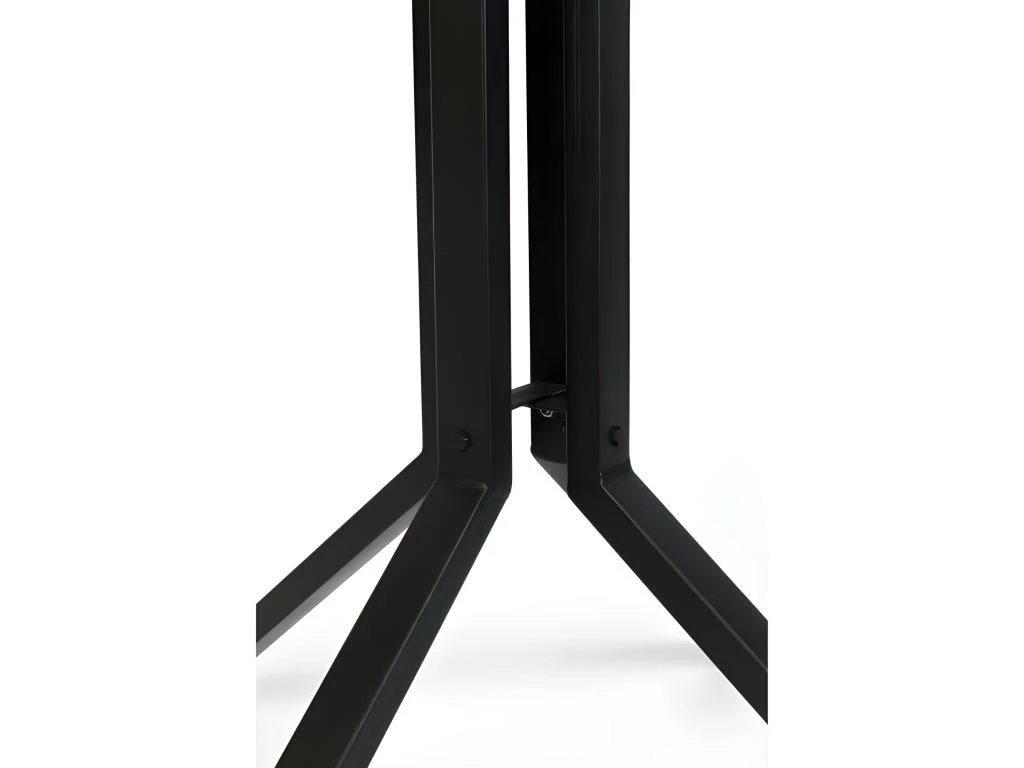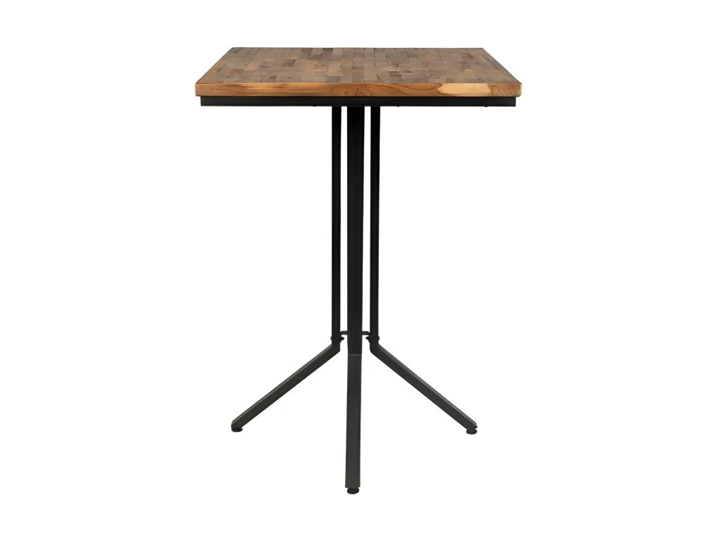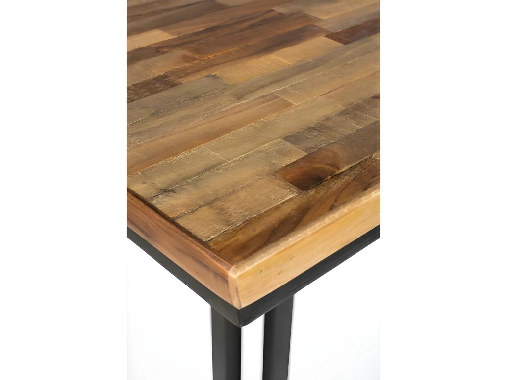 Son plateau est en bois de teck de récupération d’une épaisseur de 3 cm, il repose sur une structure solide en acier noir.