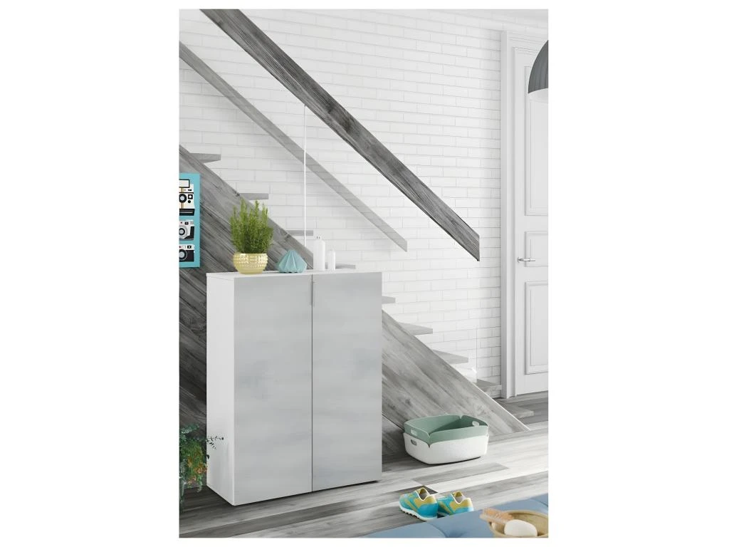 Notre meuble à chaussures 2 portes est le meuble de rangement idéal à placer dans son entrée. Grâce à ses 6 étagères, vous pourrez y ranger jusqu’à 28 paires, parfait pour y mettre les chaussures de toute la famille ! Avec son style passe partout et ses dimensions raisonnable, ce meuble à chaussure est indispensable pour une maison bien rangée dès l’entrée. Deux coloris sont disponibles pour ce meuble: contour chêne et façade blanche ou contour blanc et façade gris béton.