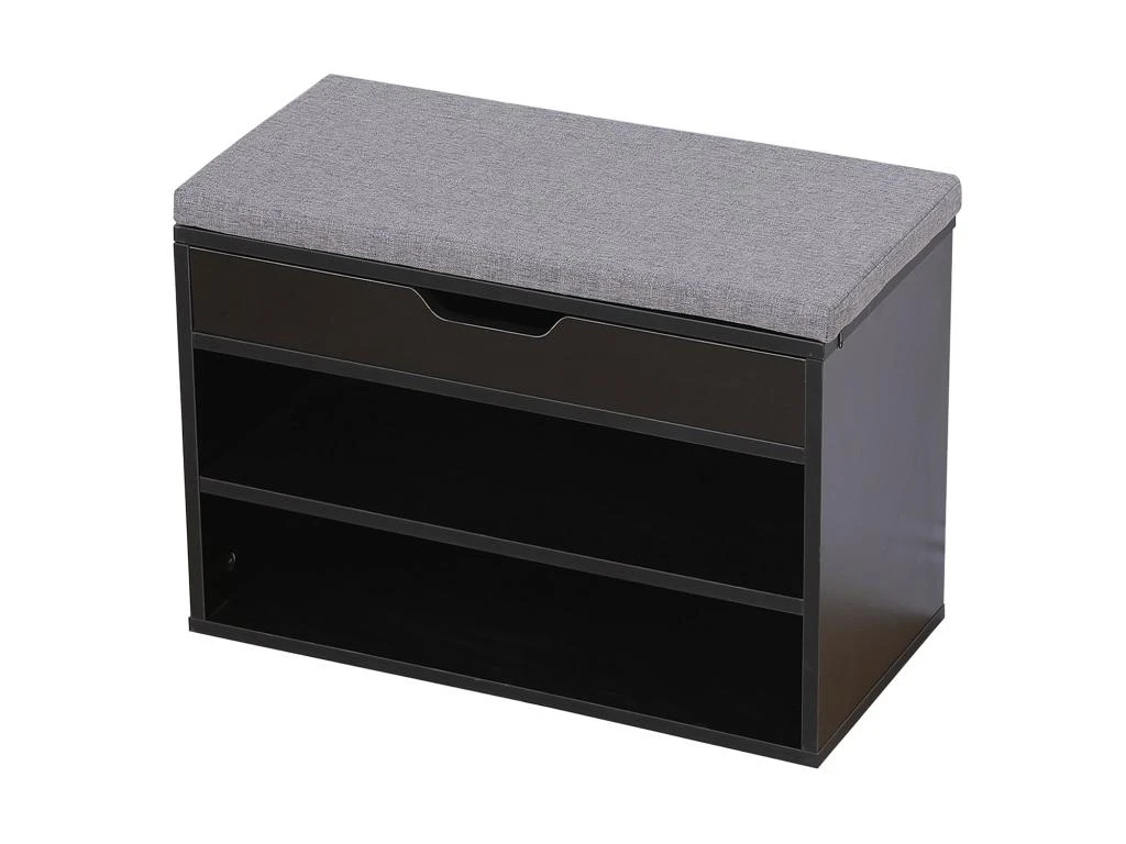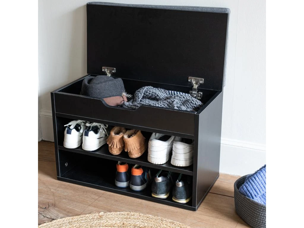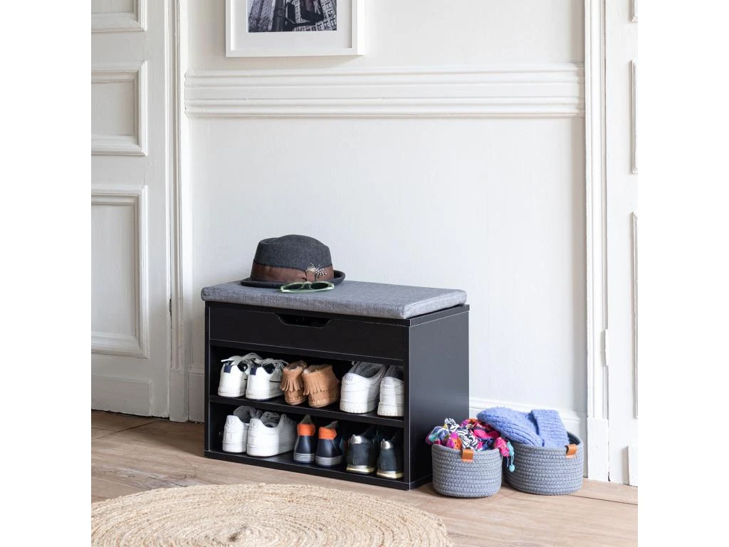 Offrez-vous un meuble de rangement pour chaussures proposant une esthétique minimaliste pour s’intégrer facilement à votre décoration. Le modèle ALAN réunit ces deux fonctions, le design et la praticité, en un seul élément de mobilier. Il possède des compartiments ouverts avec un espace suffisant pour ranger les paires de chaussures que vous mettez le plus souvent. Le coffre supérieur permet d’y dissimuler vos accessoires tels que les lacets ou un chausse-pied. Vous disposez ainsi d’un espace bien organisé sans que rien ne traîne sur le sol de votre maison. Un coussin en mousse au-dessus du coffre vous offre une assise confortable pour enfiler ou retirer vos chaussures.