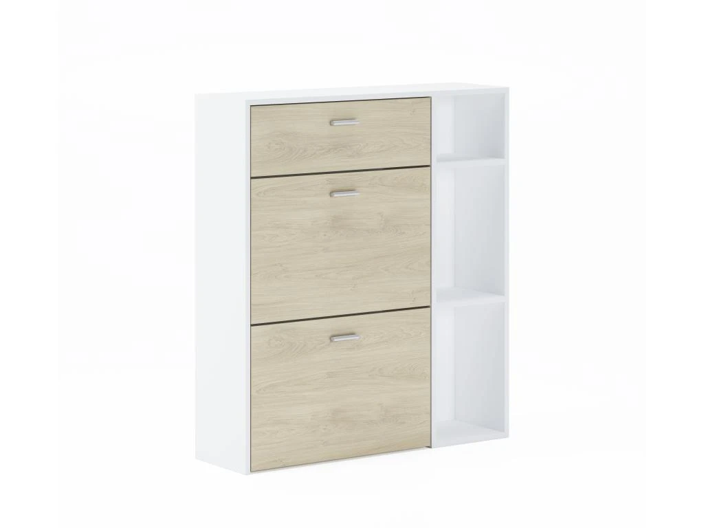 Meuble moderne Meuble a Chaussures en melamine de haute qualite, structure de couleur Blanc, couleur Puccini dans les 2 portes basculantes et le tiroir.