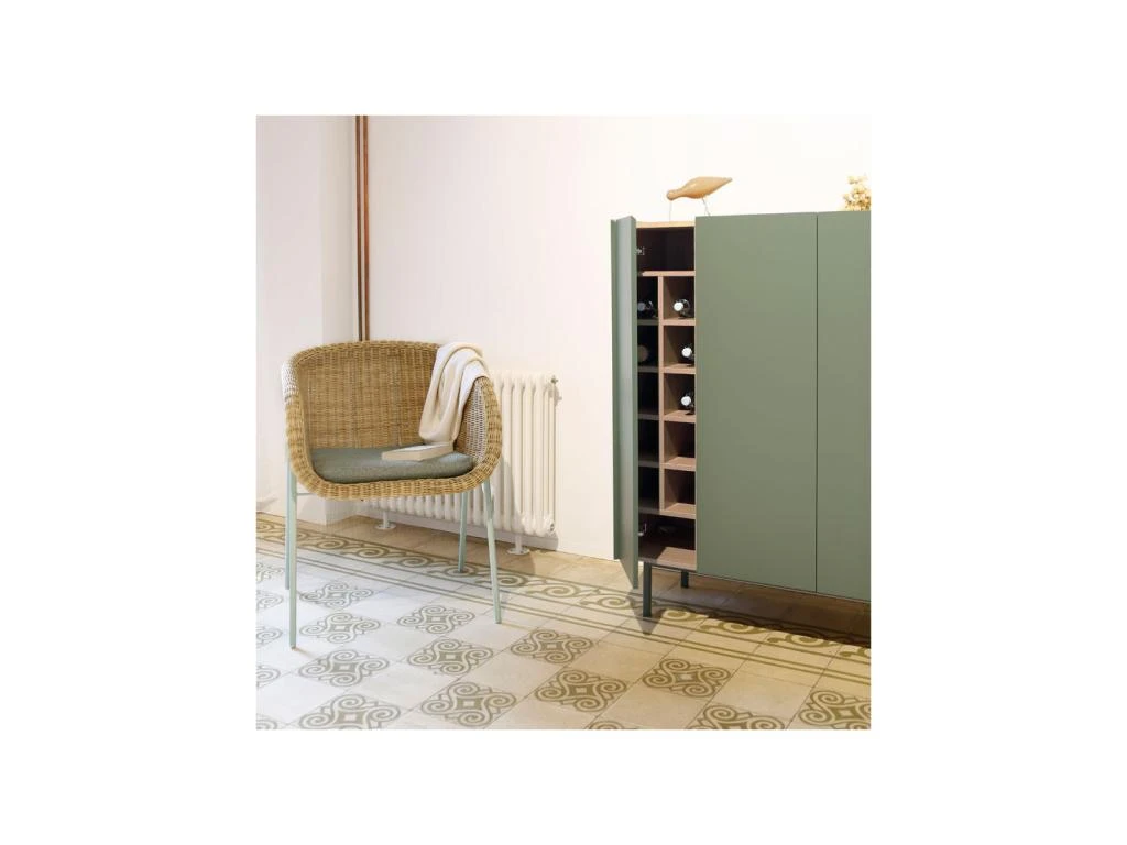 Le corps de ce meuble bar à la dimension optimisée repose sur un piétement en métal afin d’offrir légèreté, stabilité et robustesse.