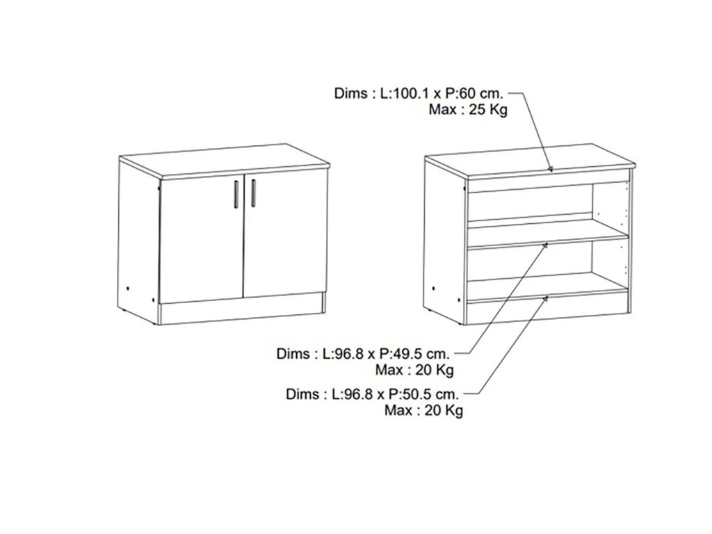Dimensions du plan de travail : Longueur 100,10 x Profondeur 60 cm / charge maximale : 25 kg
