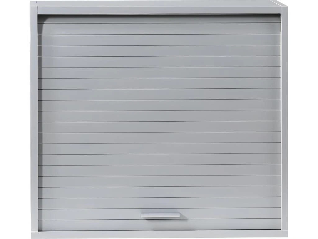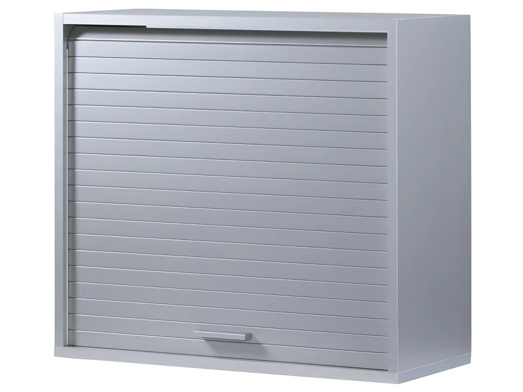Meuble de Cuisine coloris Aluminium à poser sur le plan de travail ou à suspendre. Fermeture à rideau coulissant.