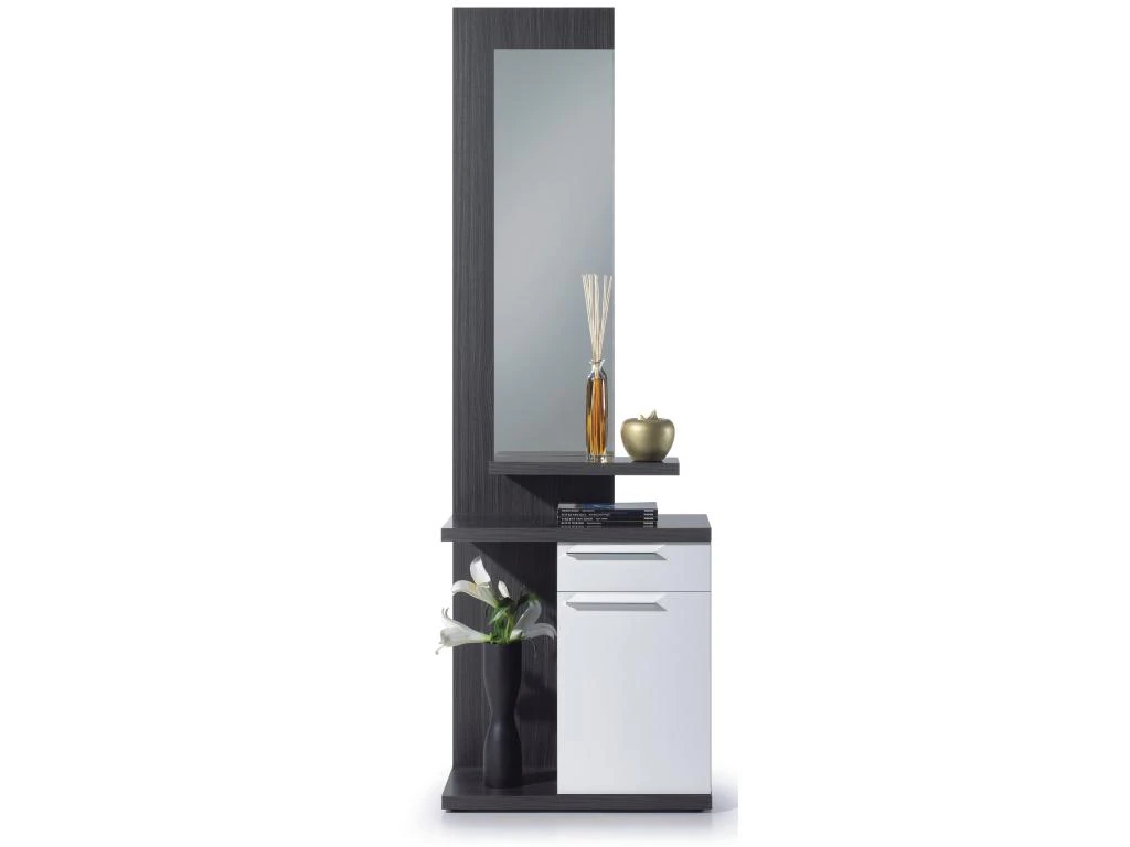Meuble d’entrée coloris Gris cendre/ blanc brillant, Parfait pour l’arrangement de vos objets et permet d’harmoniser votre intérieur. Dimensions : 186cm x 61cm x 29cm, coloris : Gris cendre/ blanc brillant, poids : 25 kg