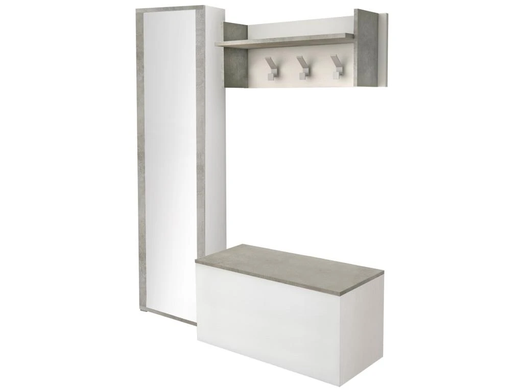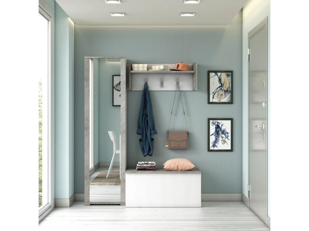 STRUCTURE ET UTILISATION – Ensemble d’entrée moderne composé d’une étagère à chaussures, d’un coffre de rangement polyvalent et d’une armoire avec trois patères et une étagère supérieure – Grâce à la composition complète de tout ce dont vous avez besoin, il est parfait pour votre entrée – Le porte-manteau est doté de 3 crochets idéaux pour accrocher des vestes et des manteaux et une étagère supérieure pour ranger des chapeaux ou des sacs – La boîte de rangement pratique est idéale pour ranger soigneusement vos affaires, parfaite pour être utilisée comme chaise lorsque le couvercle est fermé – L’armoire peut être facilement utilisée comme étagère à chaussures pratique, grâce aux 7 étagères utilisables horizontalement ou inclinées.
