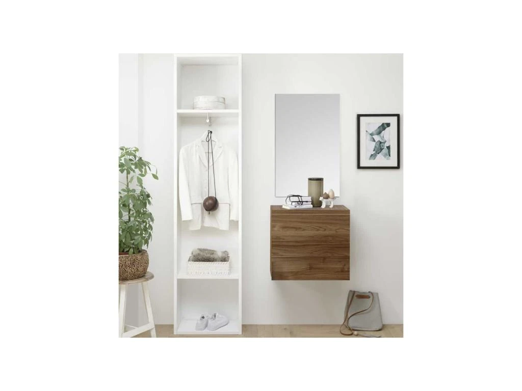Equipez votre entrée avec cet ensemble comprenant Meuble d’entrée + Miroir + Vestiaire.