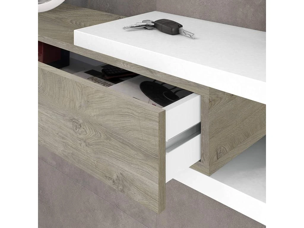 – Dimensions du meuble d’entrée : 95 cm (largeur) x 19 cm (hauteur) x 26 cm (profondeur).