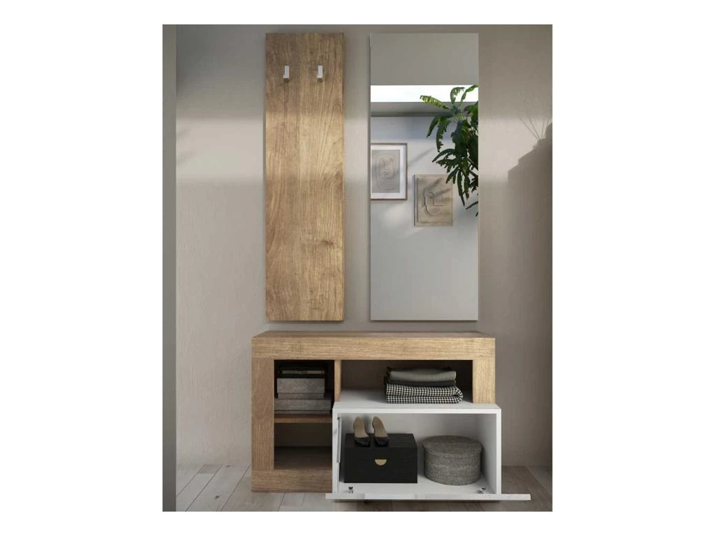 Idéal pour prendre place dans une entrée ce lot de meubles vous permettra de strucutrer votre entrée tout en vous permettant de mettre en valeur quelques objets de déco et de ranger les paires de chaussures les plus utilisées.