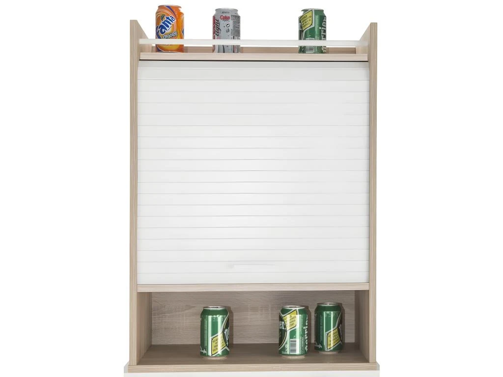 – Rideau : Panneaux de fibres de bois revêtus d’un décor coloris blanc.