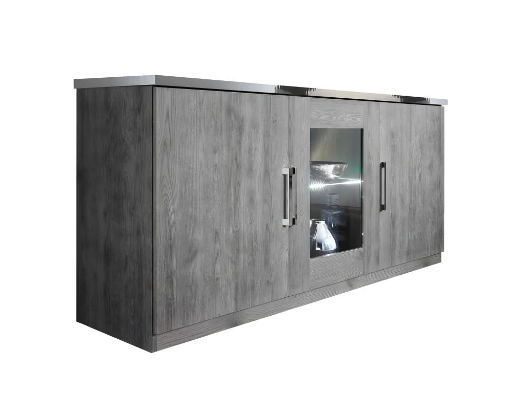 Buffet 3 Portes Aspect Chêne Gris Laqué de la gamme Naktam.