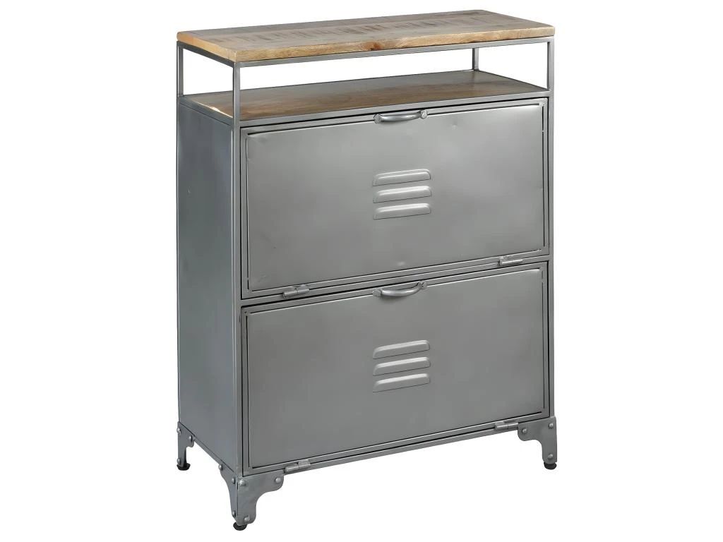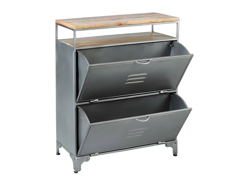 Meuble à Chaussures 2 Portes Acier Brut et Manguier de la gamme Omaya.