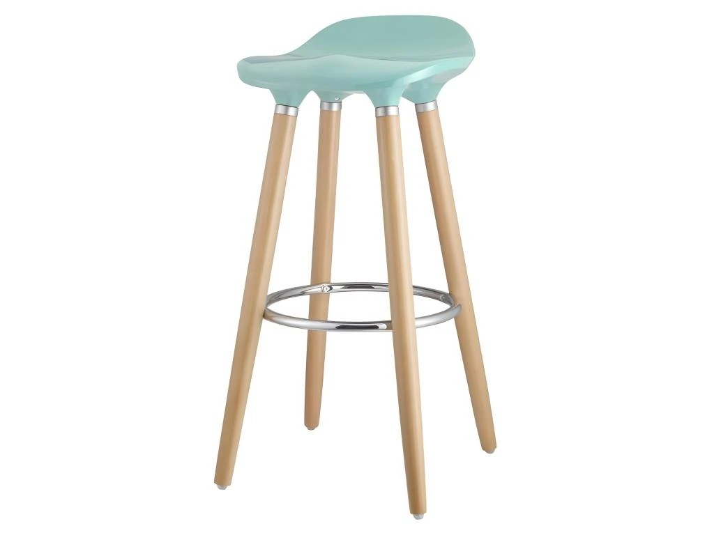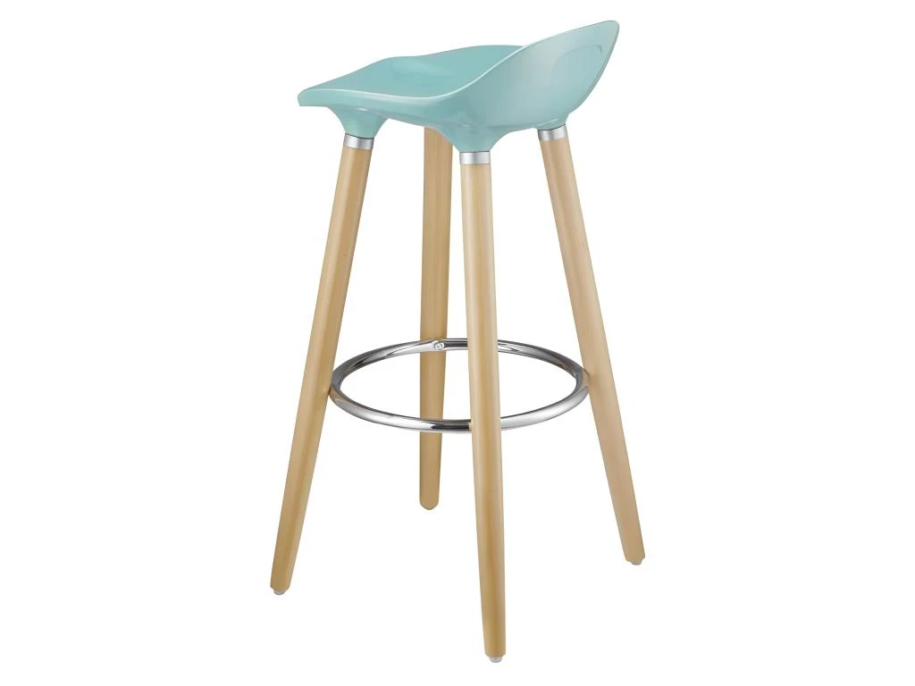 OSLO Lot de 2 tabourets de bar – Style et design scandinave – Structure en bois massif – 4 pieds bois hetre – Repose pied métal finition chromé épaisseur 1.2 mm – Tabouret L39 x P40 x H82.5 cm – Assise en ABS coloris bleu L39 x P40 x H82.5 cm – Garantie 2 ans.