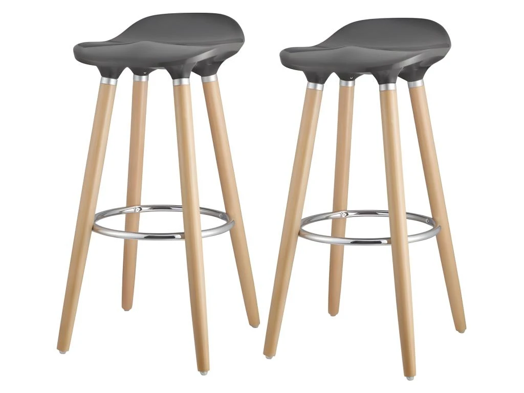OSLO Lot de 2 tabourets de bar – Style et design scandinave – Structure en bois massif – 4 pieds bois hetre – Repose pied métal finition chromé épaisseur 1.2 mm – Tabouret L39 x P40 x H82.5 cm – Assise en ABS coloris gris L39 x P40 x H82.5 cm – Garantie 2 ans.