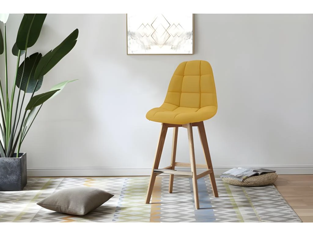 Le bois massif pour les pieds et le tissu polyester jaune curry pour l’assise cette chaise haute répond parfaitement aux codes du scandinave pour la beauté de nos intérieurs