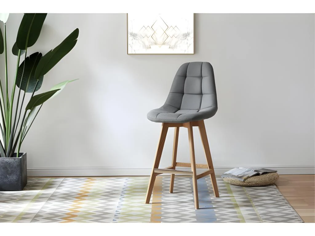 Le bois massif pour les pieds et le tissu polyester gris pour l’assise cette chaise haute répond parfaitement aux codes du scandinave pour la beauté de nos intérieurs