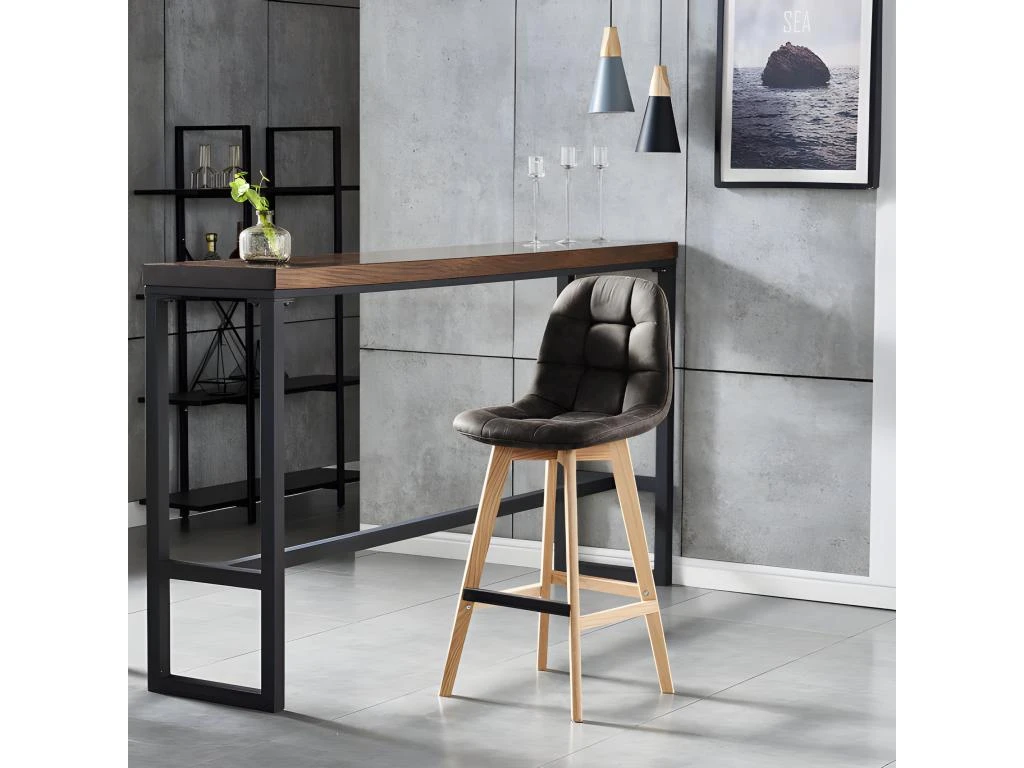 Un piètement en bois noble, le chêne massif, une assise généreusement rembourrée et recouverte d’une microfibre vintage marron foncé épaisse qui promet confort d’assise et au toucher. Un mariage de matériaux réussi et chaleureux dans la maison.
