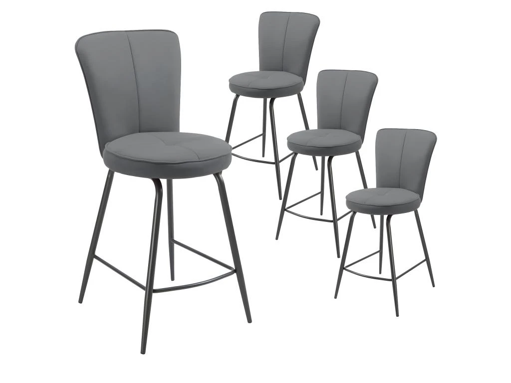 Lot de 4 Tabourets de Bar Matelassés Gris de la gamme Paril.