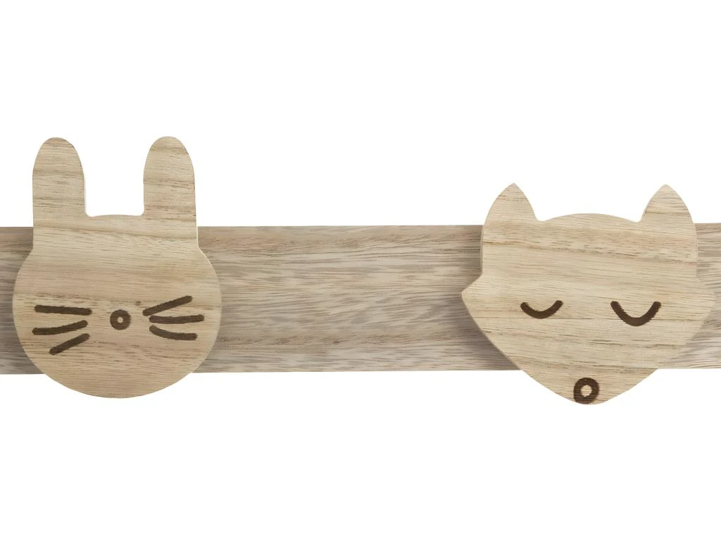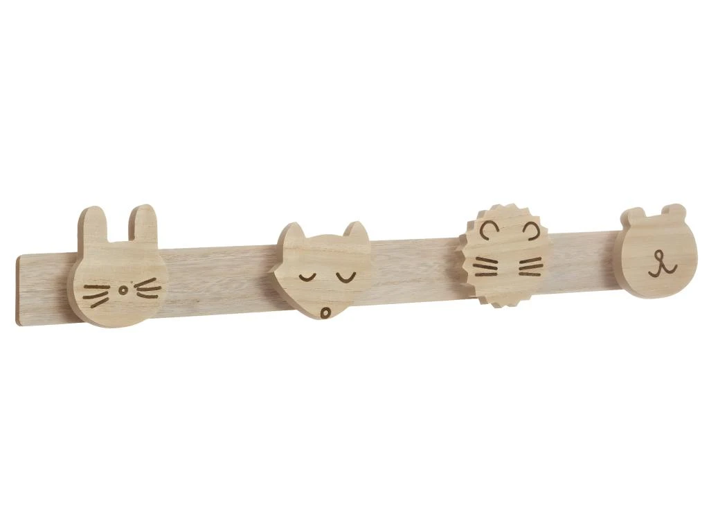 Patère Enfant en Bois 4 Crochets Animaux sauvages – Dimensions : L. 55 x P. 5 x H. 8,5 cm –