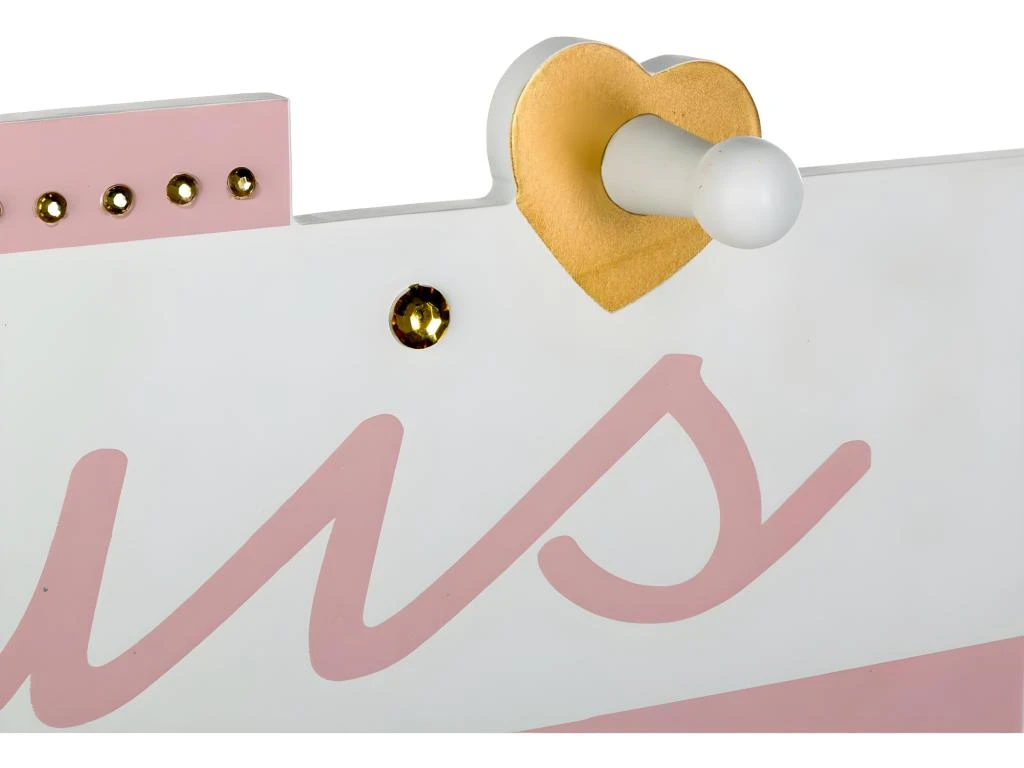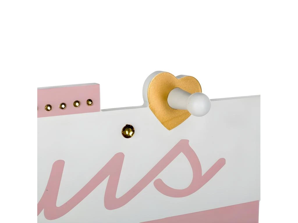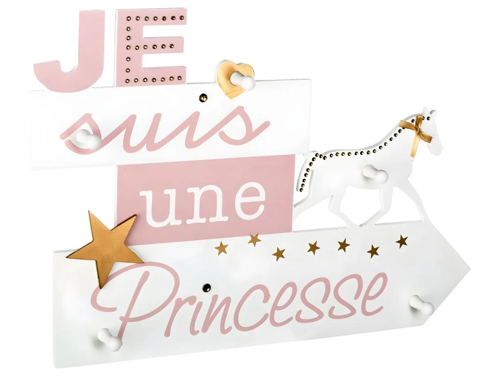 Patère Enfant Pancarte Princesse 5 Crochets en Bois 50 x 35 cm – Dimensions : L. 50 x P. 4,5 x H. 35,2 cm –