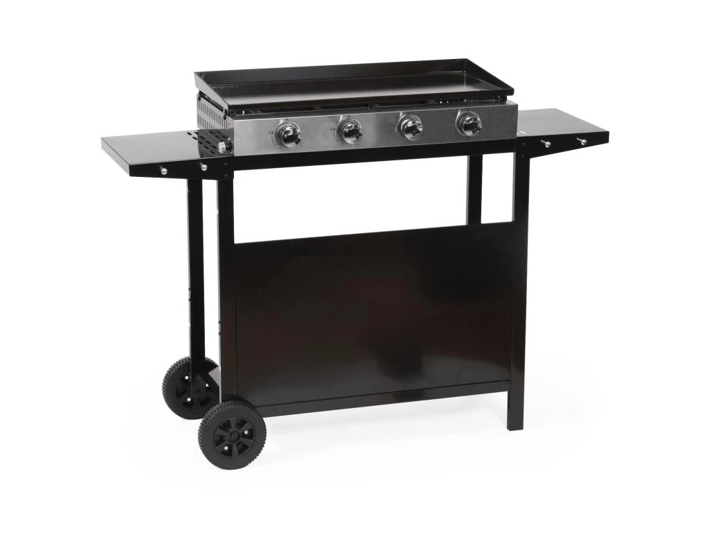Optez pour la dernière tendance en matière de cuisine extérieure avec la plancha au gaz 4 brûleurs MÉRIDA et son chariot. Vous pourrez cuire des aliments très variés sur la plaque de cuisson qui est en acier émaillé et qui vous assurera une cuisson savoureuse et homogène. L’acier émaillé est aussi connu pour ne pas s’oxyder, vous pourrez ainsi profiter de votre plancha très longtemps. La plancha au gaz MÉRIDA possède un bac récupérateur de graisse pour un nettoyage facile. Enfin, elle est posée sur un chariot à roulettes pour vous permettre de la déplacer où vous voulez.
