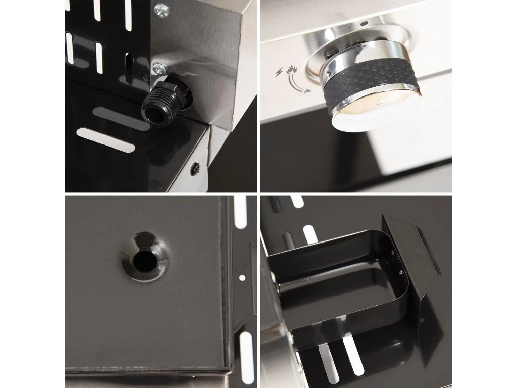 – Bouteille de gaz, tuyau et détendeur non fournis